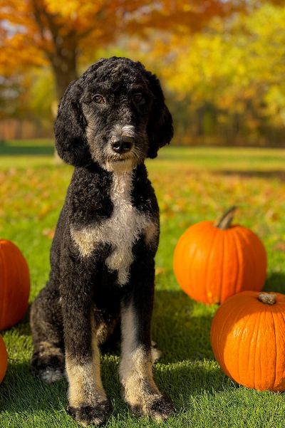 Introducing Stanley, an F1 mini Bernedoodle with those eye-catching tri-color markings that we adore in the Bernedoodle community. He is a true classic, boasting the dream coat and a delightful goofiness that embodies the innocence typical of Bernedoodles, all while being highly trainable due to his eagerness to learn. His temperament is well-balanced, as he is friendly and doesn't know a stranger. He enjoys snuggling but also loves his playtime and engaging with the family. Currently, he is finishing the Jr. High Program and is ready to transition into the High School program as soon as a spot becomes available for him. I anticipate that his adult weight will be between 25-30 lbs when fully grown, as he has reached his height but is still filling out.
